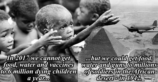 I believe that if these six million children were soldiers, there would be no issues supplying them with basic necessities, no matter where in the world they were. Just think about how even in the second World War, 75 years ago, we managed to supply millions of soldiers in North Africa, in deserts, created infrastructure where there was none and made the impossible possible. And we didn’t just supply them with food, water and medicine, but tanks and weapons and millions of rounds of ammunition. Of course, we can argue about whether some forms of foreign aid are perhaps not useful, that it’s too complex to go into all these regions and to deal with local politics. Certainly, in war-ridden regions, like Syria over the past few years, it is extremely difficult to help the local population. But that’s beside the point – the point I am making is that there is an apparent lack of political, but even more importantly, societal will. That includes, most likely, you.