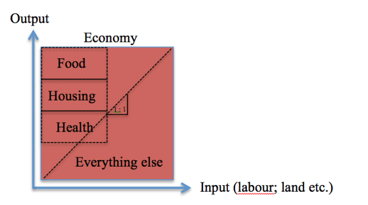 In a nutshell, this is what the economy looks like – we have inputs (work, resources) and outputs (b).
